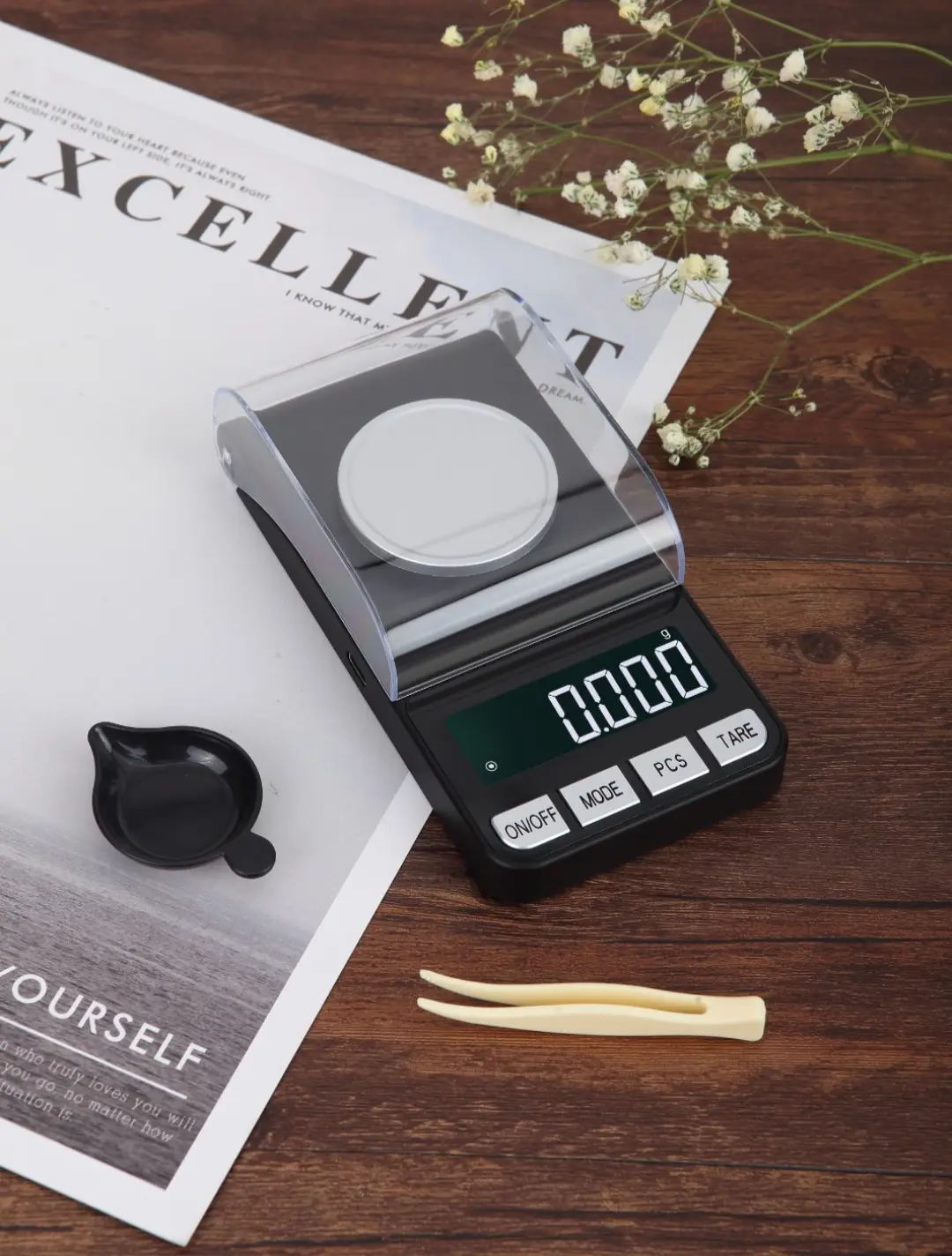 Useful for weighing herbs, concentrates, and small product components with precision.