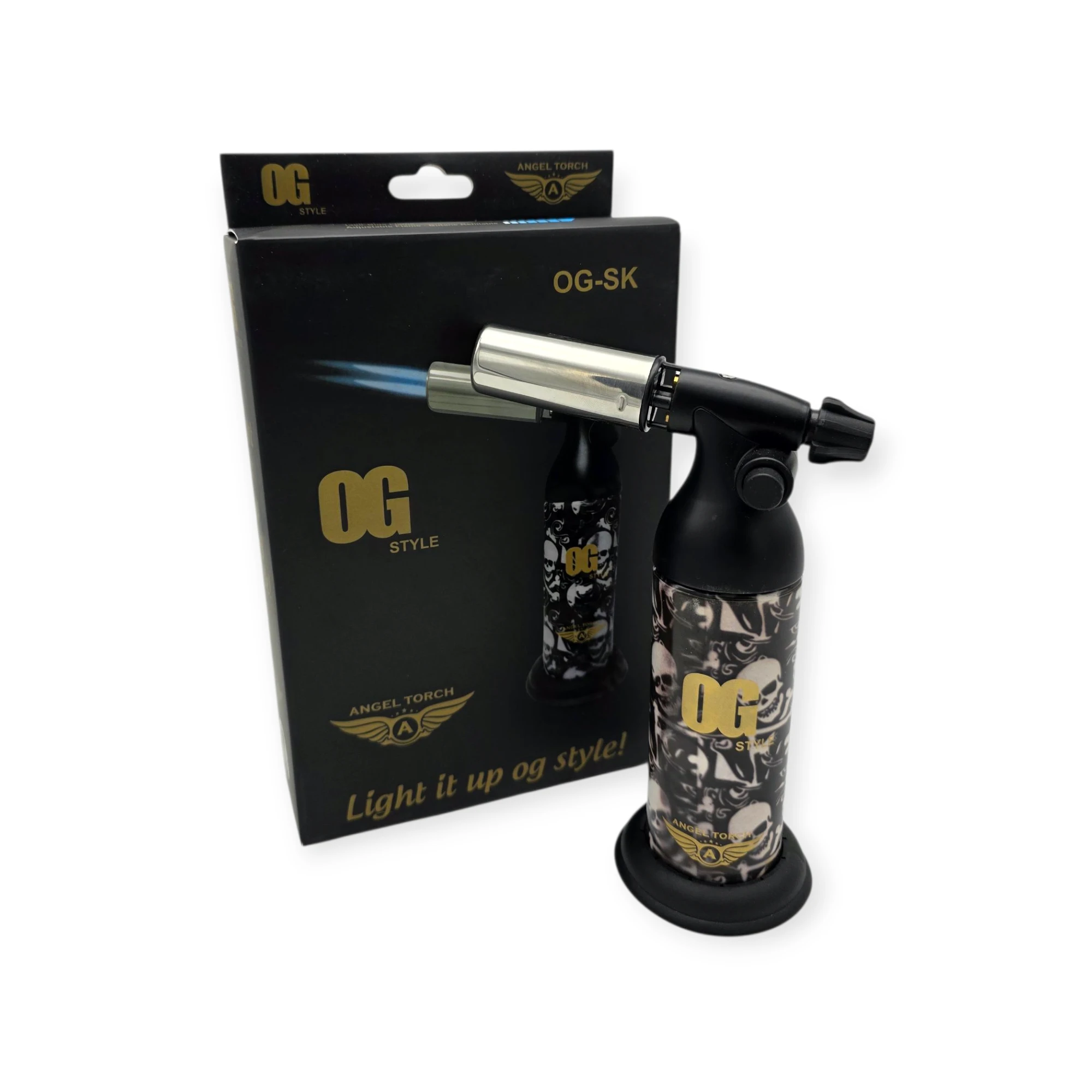The OG KING-SKULL – DUAL FLAME JUMBO BLOW TORCH is designed for professionals and retailers who demand power, durability, and standout design in one premium torch. Built for high performance, this jumbo torch delivers consistent dual flames, making it ideal for heavy-duty use in smoke shops, dispensaries, and wholesale distribution.